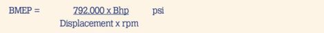 BMEP values can also be used as an indicator of how hard the engine is working. A small engine with a BMEP of 100psi is working four times harder than a large engine with only a BMEP of 25psi even though the larger engine may develop more horsepower because its displacement is much larger than the smaller engine.