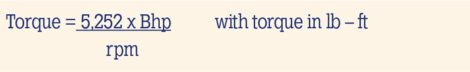 These are the same units as work but are expressed the opposite to indicate that there is a difference. The fact that these two quantities have the same basic units means we can calculate a torque value for an engine that is doing useful work that is an engine with a Bhp value.