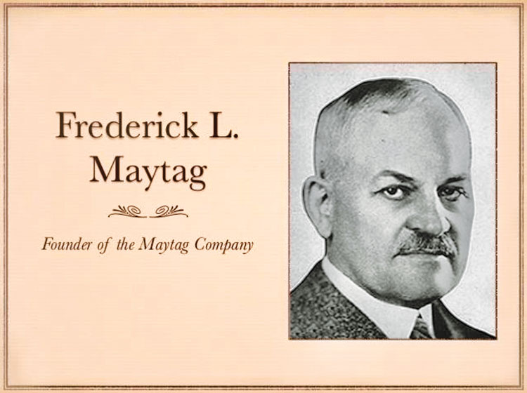 Fredrick Louis Maytag, later known as F.L. was born July 14, 1857, in Elgin, Illinois. He founded the Maytag Corp., which was finally acquired by Whirlpool in 2006. I’m sure many of us have at least one Maytag appliance in our homes.