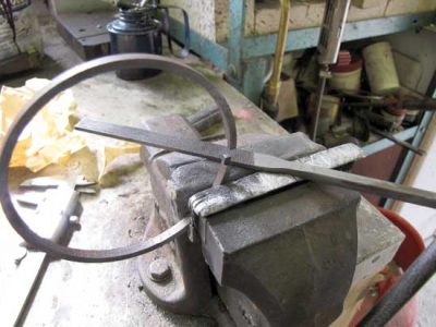 The next morning, I left the doors to the workshop open and cleared the work bench. Wearing thick leather gloves, I removed the piston from the oven and the crown from the freezer as I passed it on the way to the workshop. I quickly fitted the crown in the piston and as soon as the cold hit the hot metal I could feel it tightening up. It was not long before it was a tight fit, so I set the piston to one side to cool off.