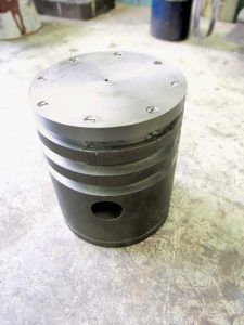 After further consideration, the best course of action appeared to be to make a new crown. This would enable me to return the diameter to original dimensions and I could also machine the top ring groove so that the width could be restored for a standard width 0.250-inch piston ring.